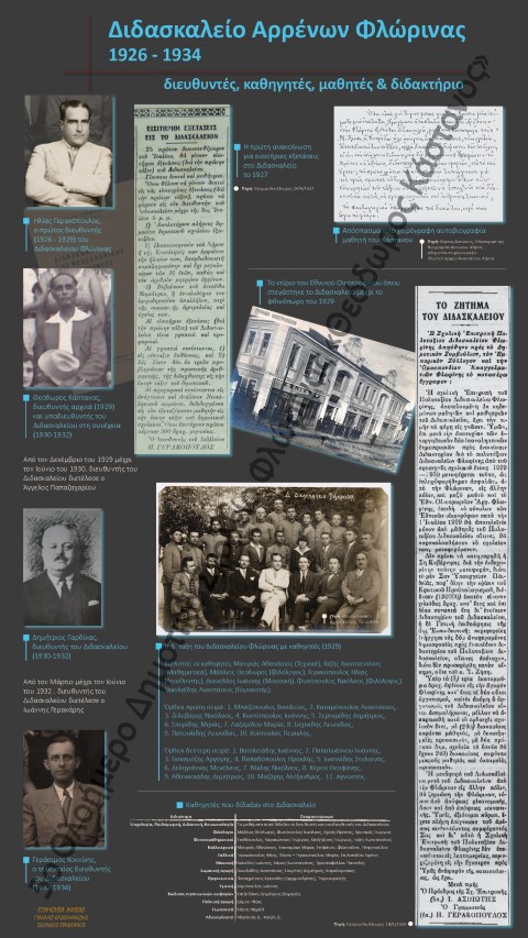 Για να συγκροτήσουμε το περιεχόμενο του εκπαιδευτικού υλικού, ερευνήσαμε τη σχετική βιβλιογραφία, αλλά και δημόσια αρχεία, συγκεντρώνοντας αρκετά από αυτά που υπάρχουν στις αφίσες. Όμως, αν σταματούσαμε σε αυτά, το αποτέλεσμα θα αδικούσε την παιδαγωγική άνοιξη για την οποία σήμερα μαζευτήκαμε εδώ, καθώς θα απουσίαζαν τα τεκμήρια των αυτοπτών μαρτύρων. Έτσι, μετά τις γιορτές και μέχρι προχθές, επικοινωνήσαμε με δεκάδες απογόνους μαθητών του Διδασκαλείου, πολλοί εκ των οποίων συνεισέφεραν υλικό από τα ιδιωτικά τους αρχεία. Κι έτσι προέκυψε το αποτέλεσμα που βλέπετε. Γι’ αυτό λοιπόν οφείλουμε ευχαριστίες στους εξής: