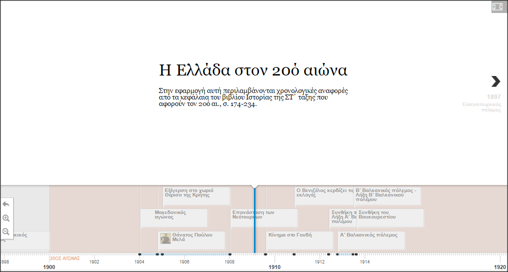 Οι τέσσερις εφαρμογές αναπτύχθηκαν με σκοπό την κατανόηση του ιστορικού χρόνου. Ξεκινήστε από το παράδειγμα συνδυαστικής αξιοποίησης των εφαρμογών κάνοντας κλικ στο εικονίδιο με τα δυο παιδιά. Επίσης, μπορείτε να δείτε βοήθημα για κάθε μια εφαρμογή περνώντας τον δείκτη πάνω από το πλήκτρο Β κάθε εφαρμογής.