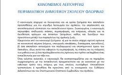 Ο κανονισμός λειτουργίας σχολείου είναι μια πρωτοβουλία του Πειραματικού Δημοτικού Σχολείου Φλώρινας και συντάχθηκε με τη συνεισφορά του διδακτικού προσωπικού και των μελών του Επιστημονικού και Εποπτικού Συμβουλίου του σχολείου. Φιλοδοξεί να αντιμετωπιστεί ως...
